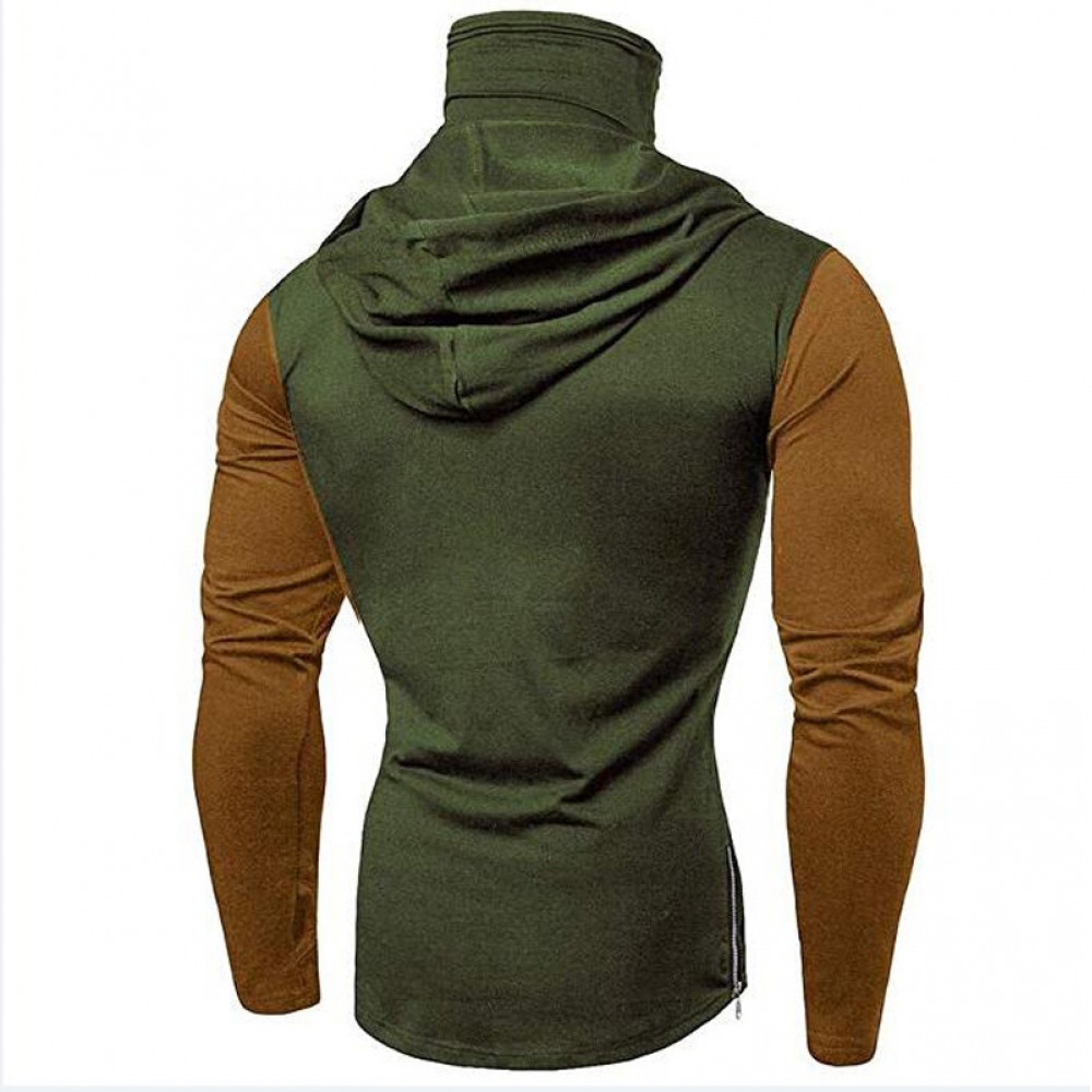 Men's Cotton and Linen Long-Sleeved Pullover Fashion Urban Unhooded Stand-Up Collar Men's T-Shirt