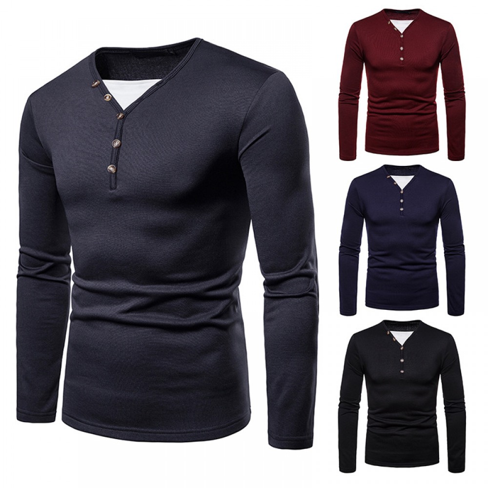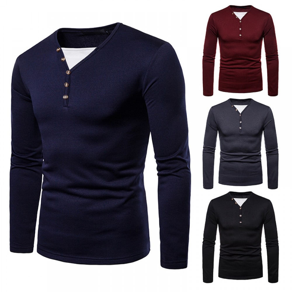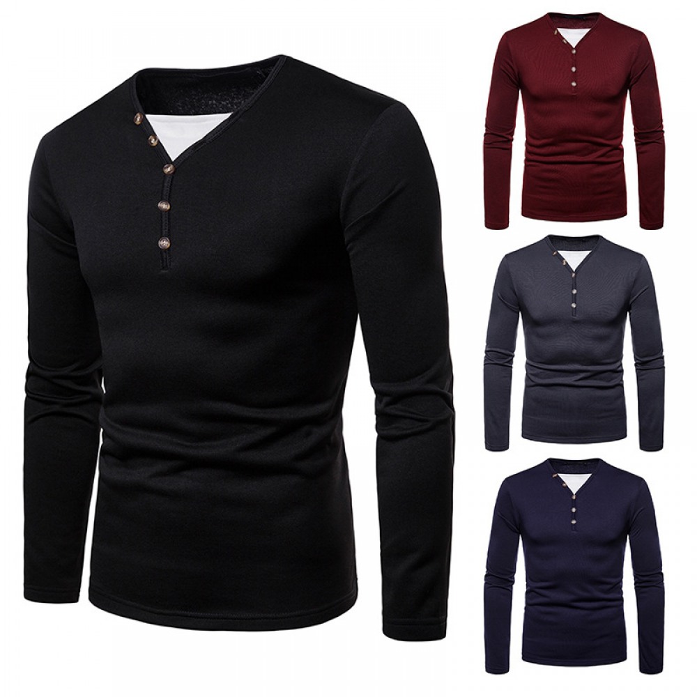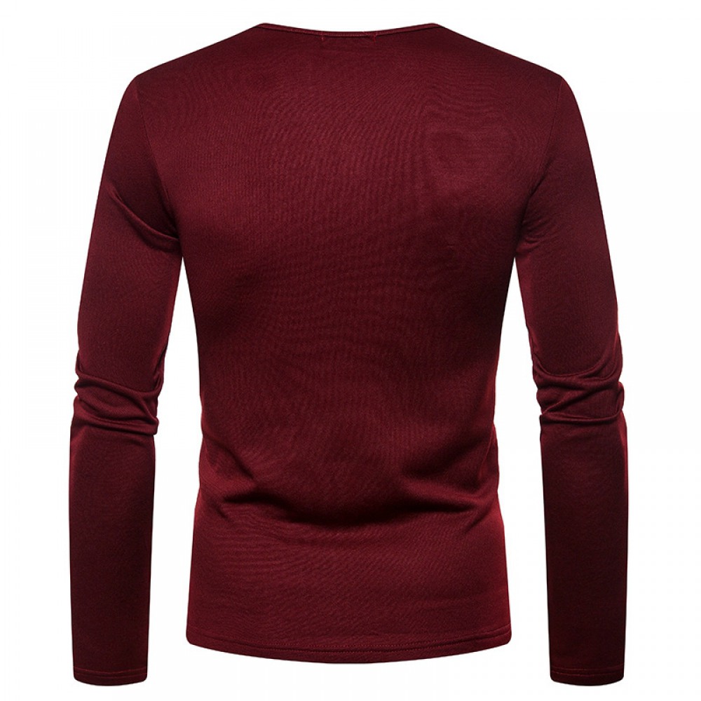 Men's Plus Size Plus Velvet Warm Henley Collar Long-Sleeved T-Shirt Bottoming Shirt