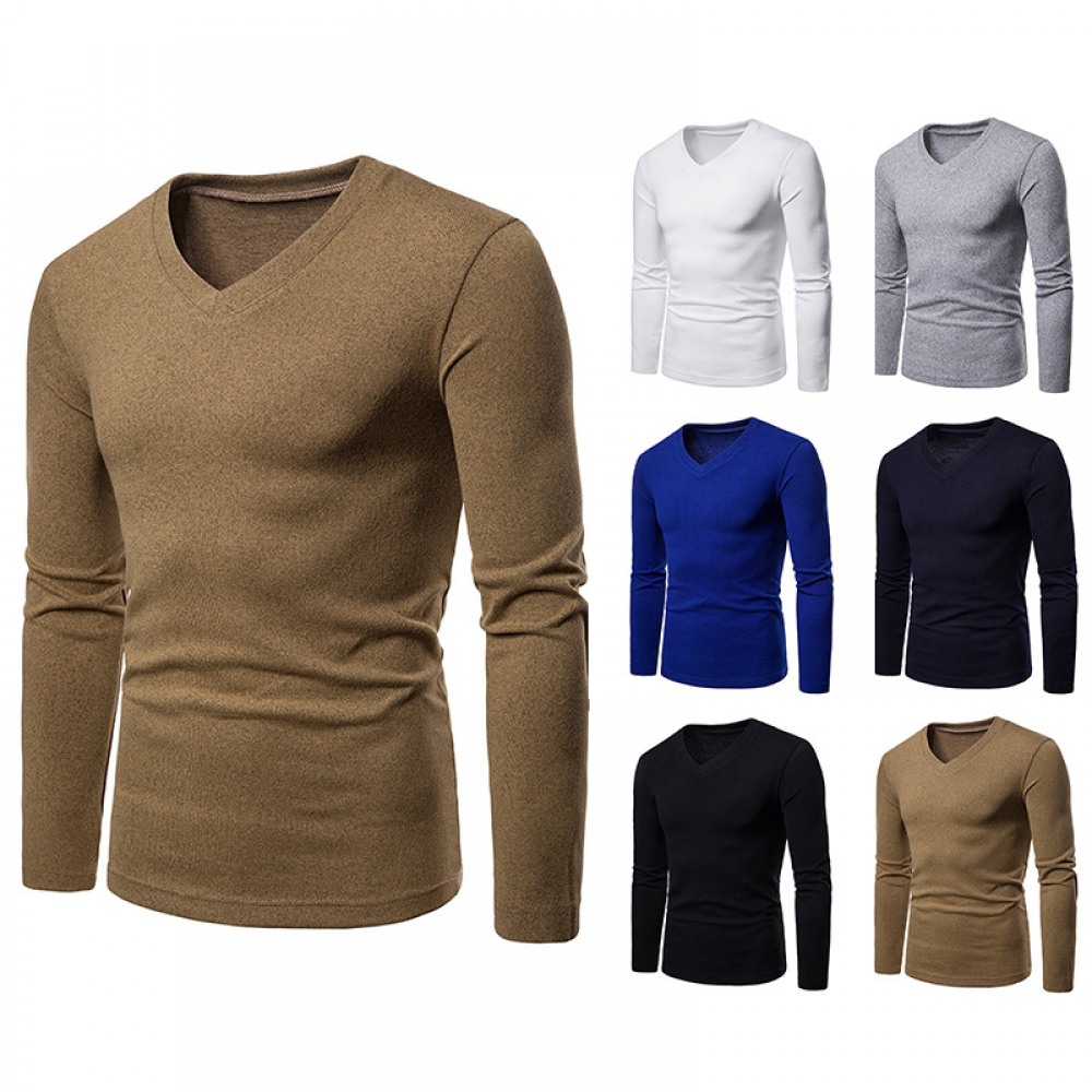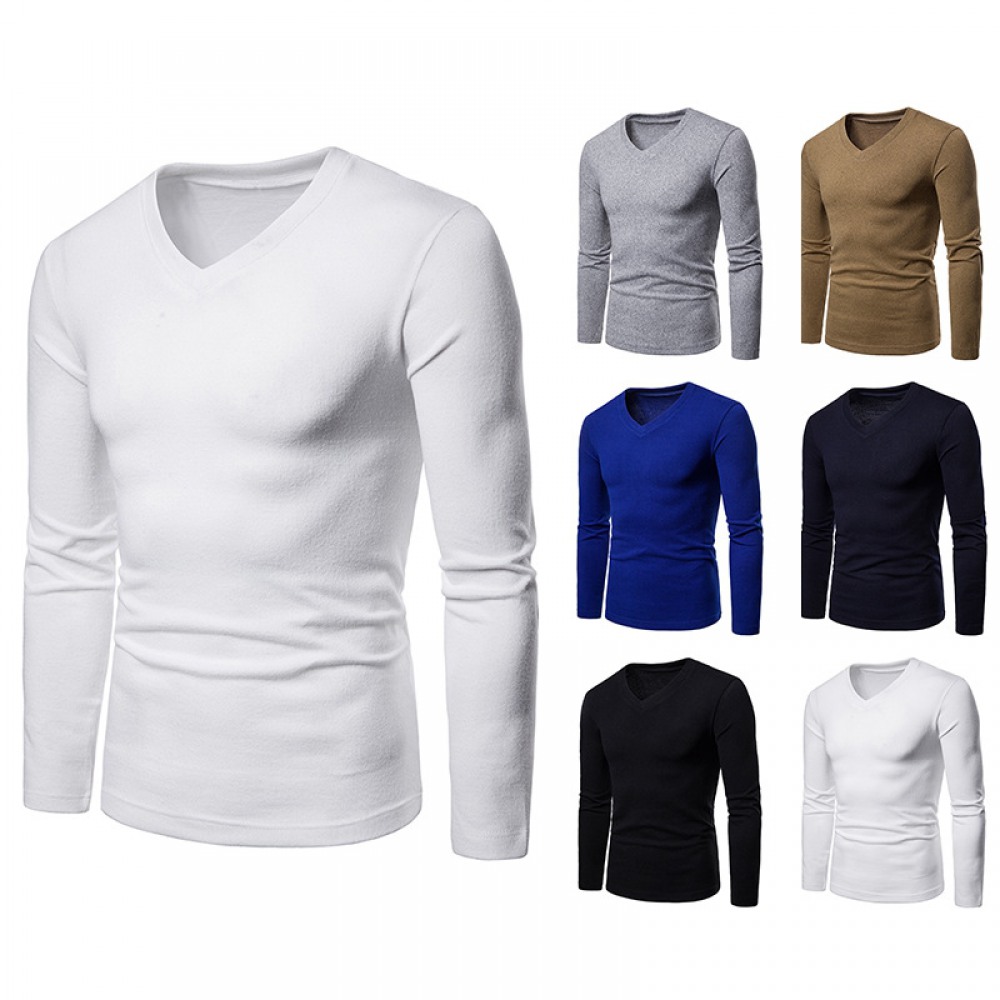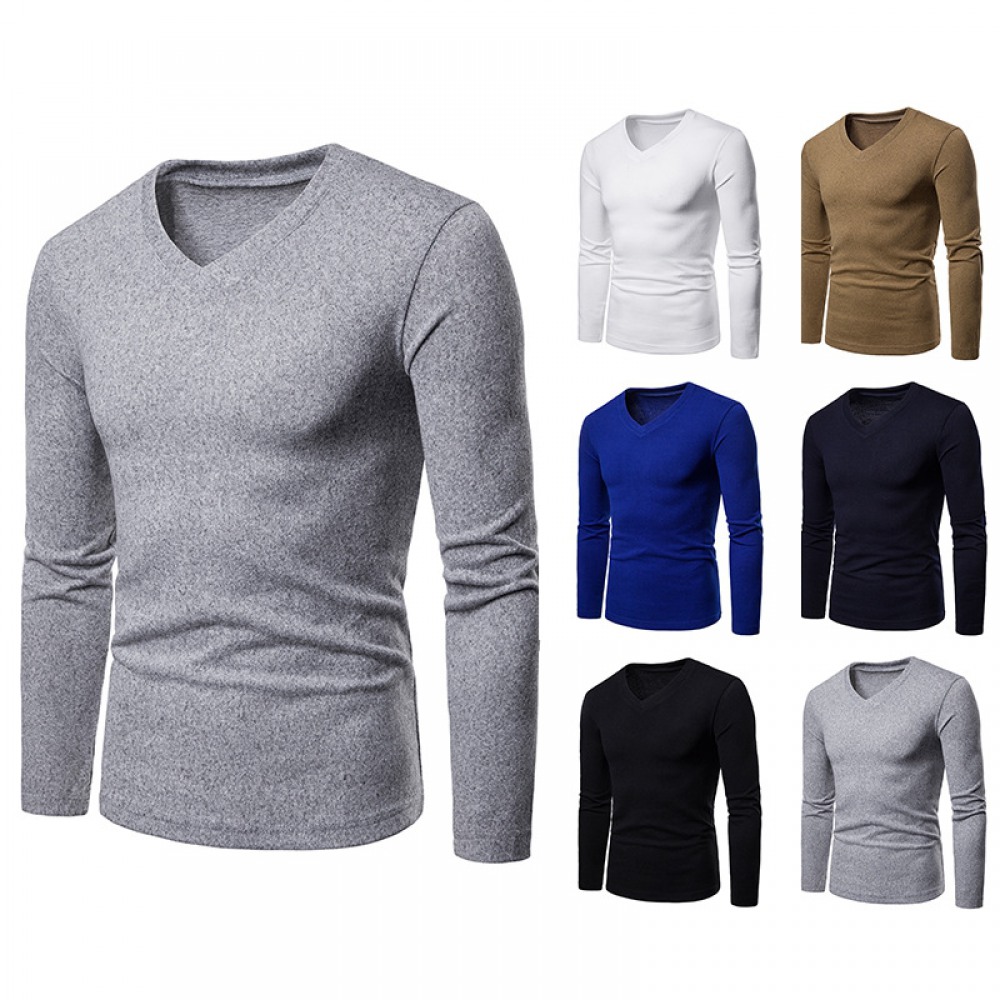 Men's Plus Size Wool Fleece V-Neck Long Sleeve Bottoming Shirt