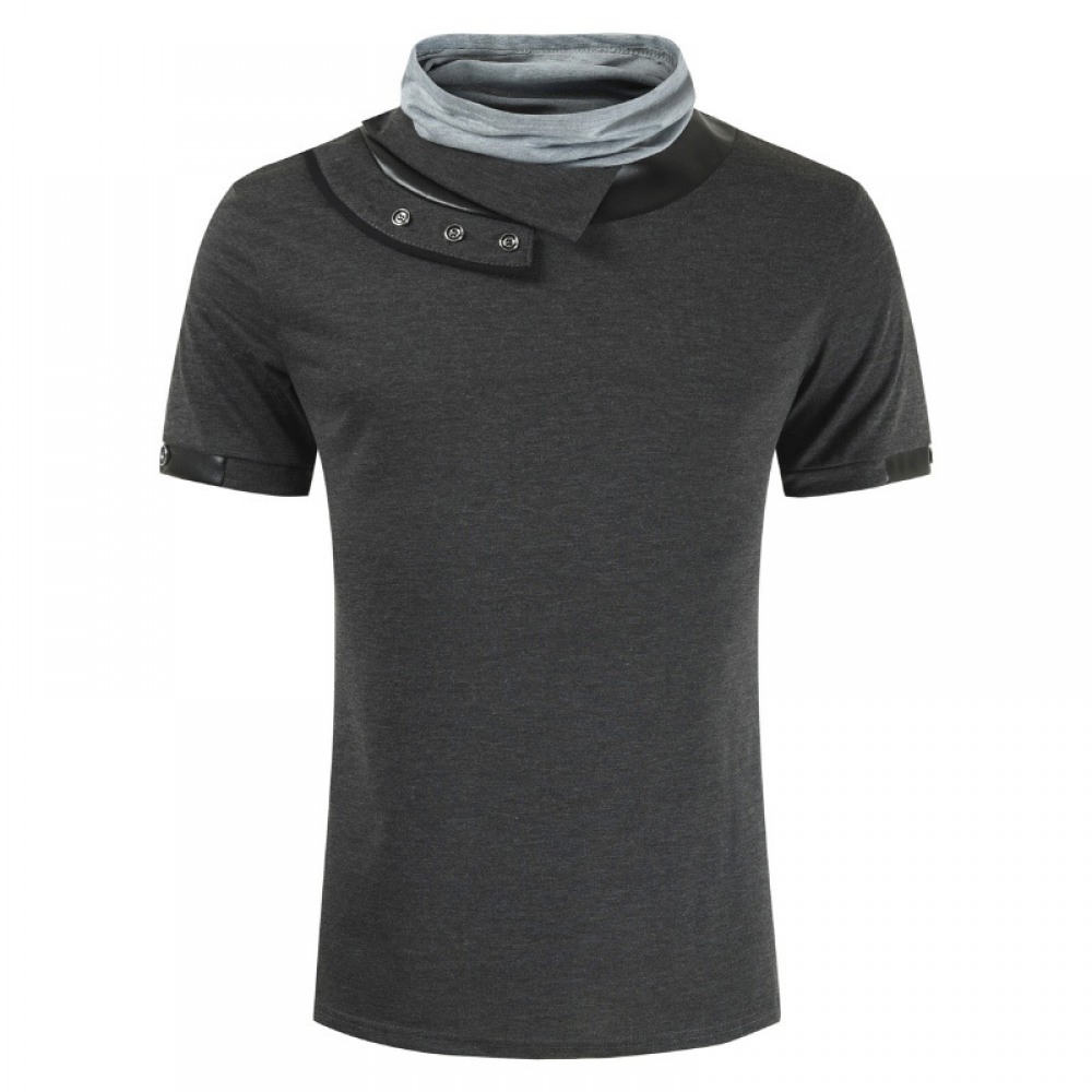 Summer Men's Personality Contrast Color Lapel Short-Sleeved T-Shirt