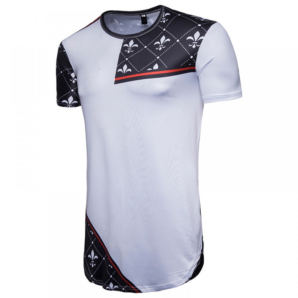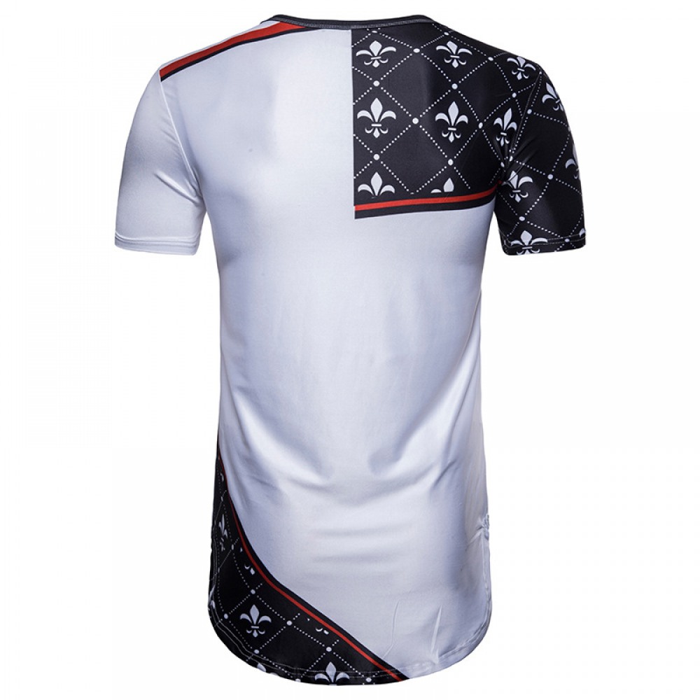 New Men's Irregular Printing Short-Sleeved Long T-Shirt