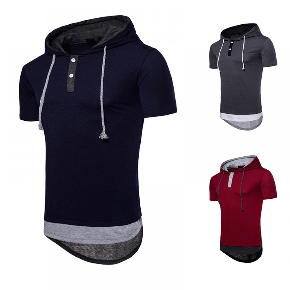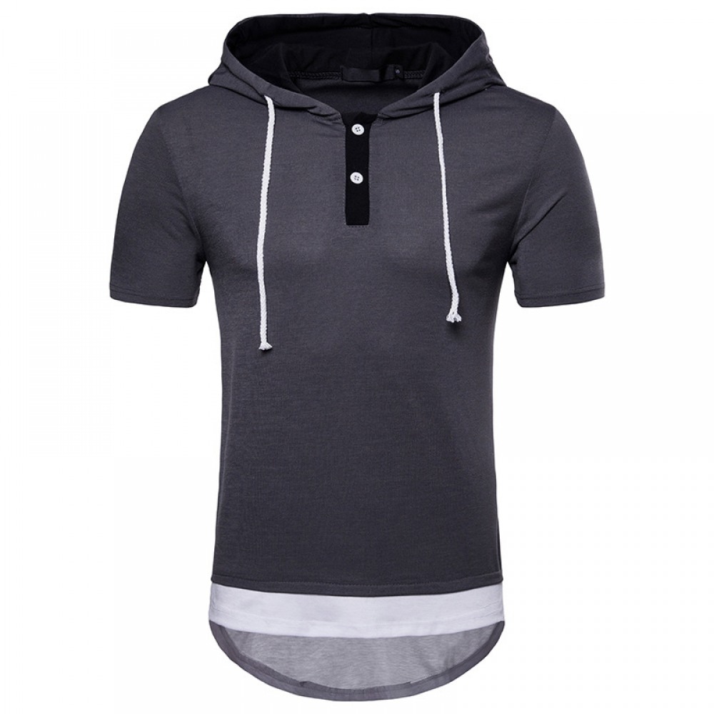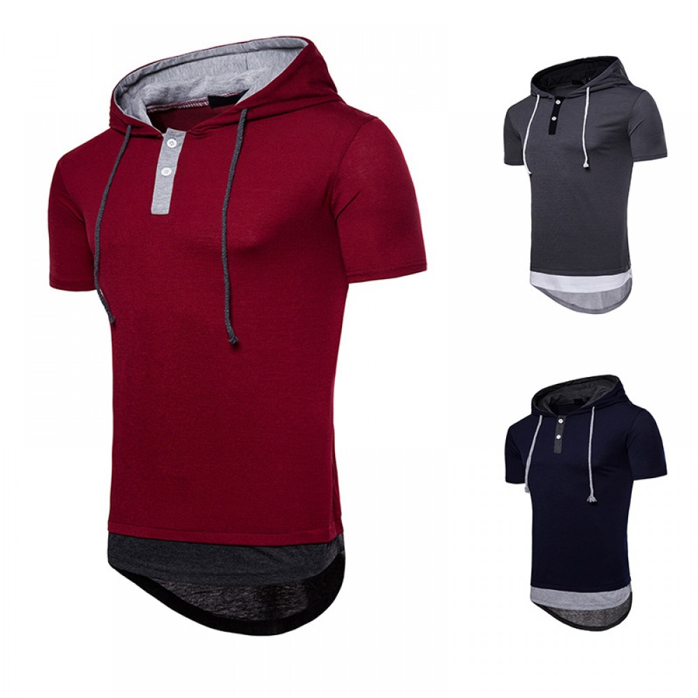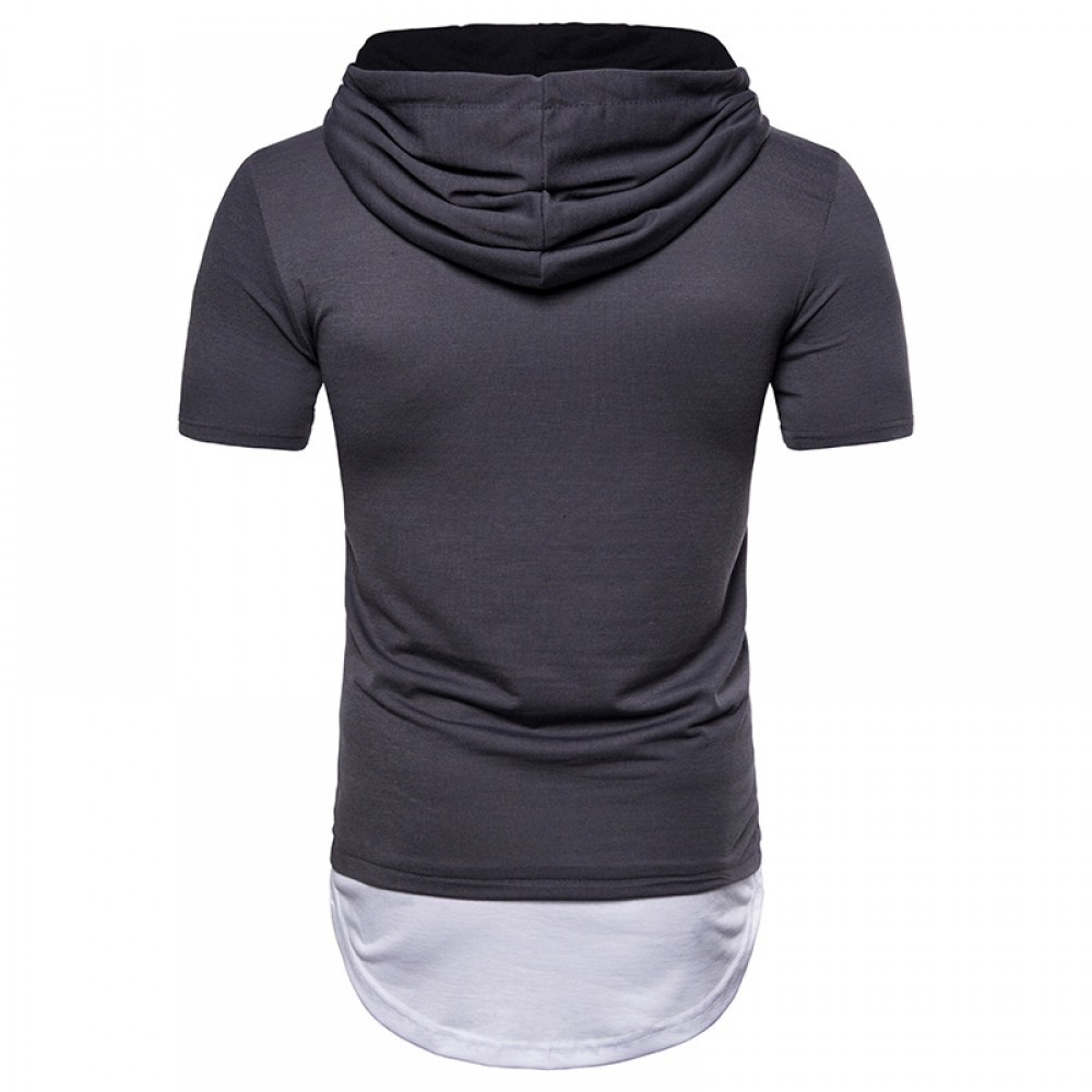New Men's Plus Size Hip-Hop Arc Short-Sleeved Hooded T-Shirt