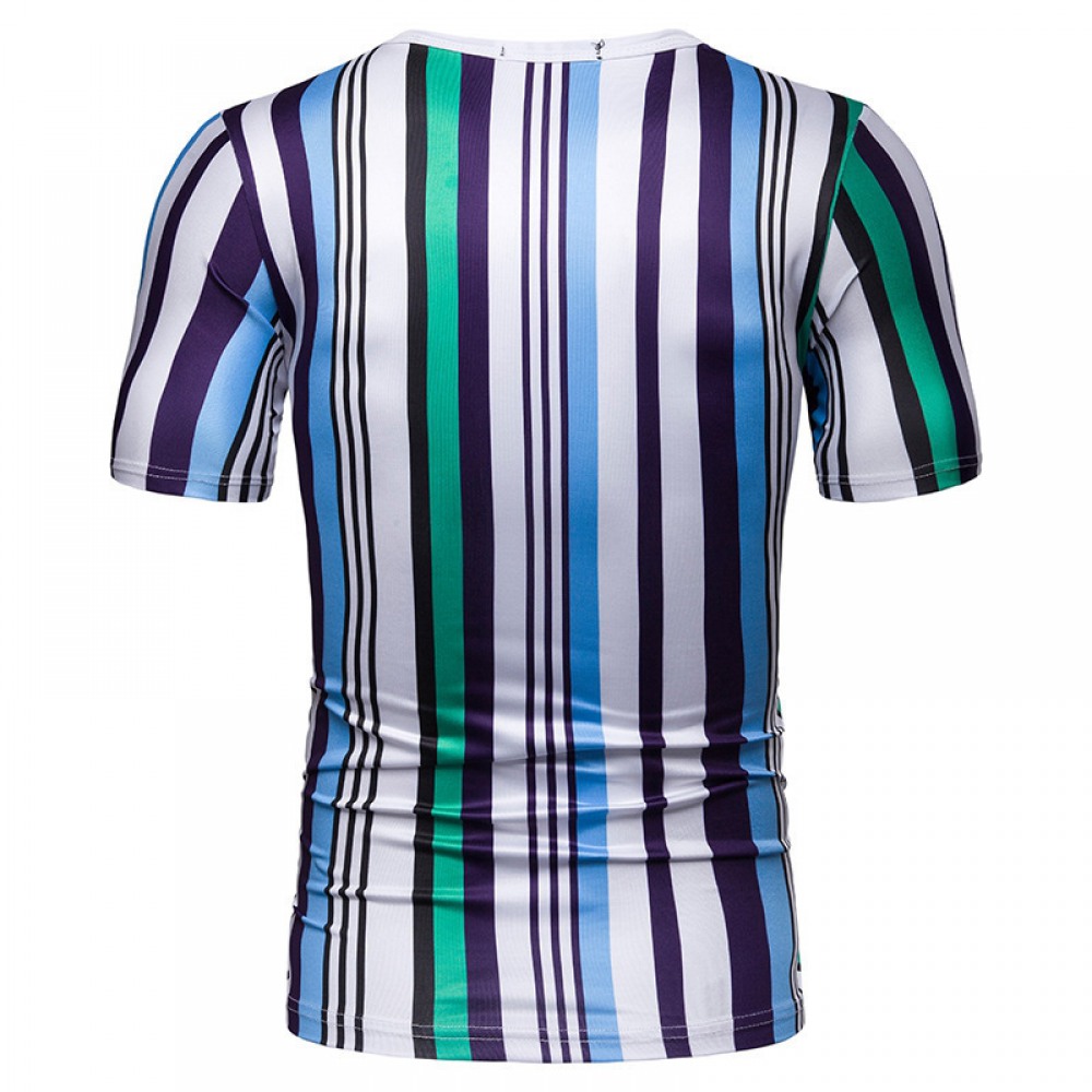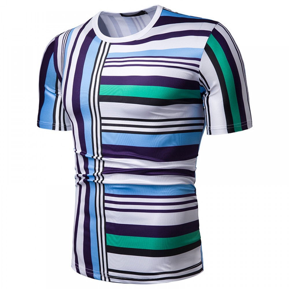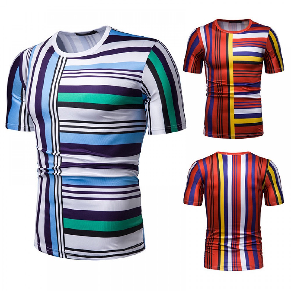 New Summer Men's Short-Sleeved T-Shirt Mens Contrast Striped Slim Casual T-Shirts