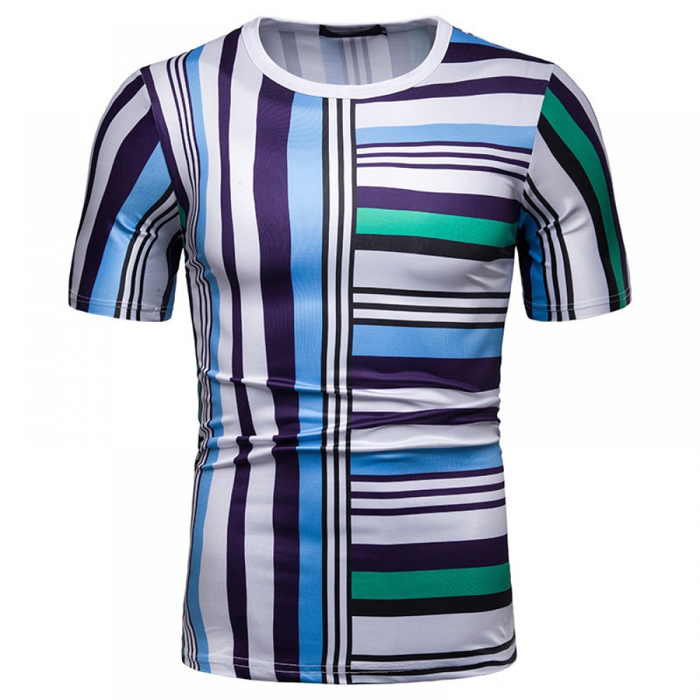 New Summer Men's Short-Sleeved T-Shirt Men's Contrast Striped Slim Casual T-Shirt