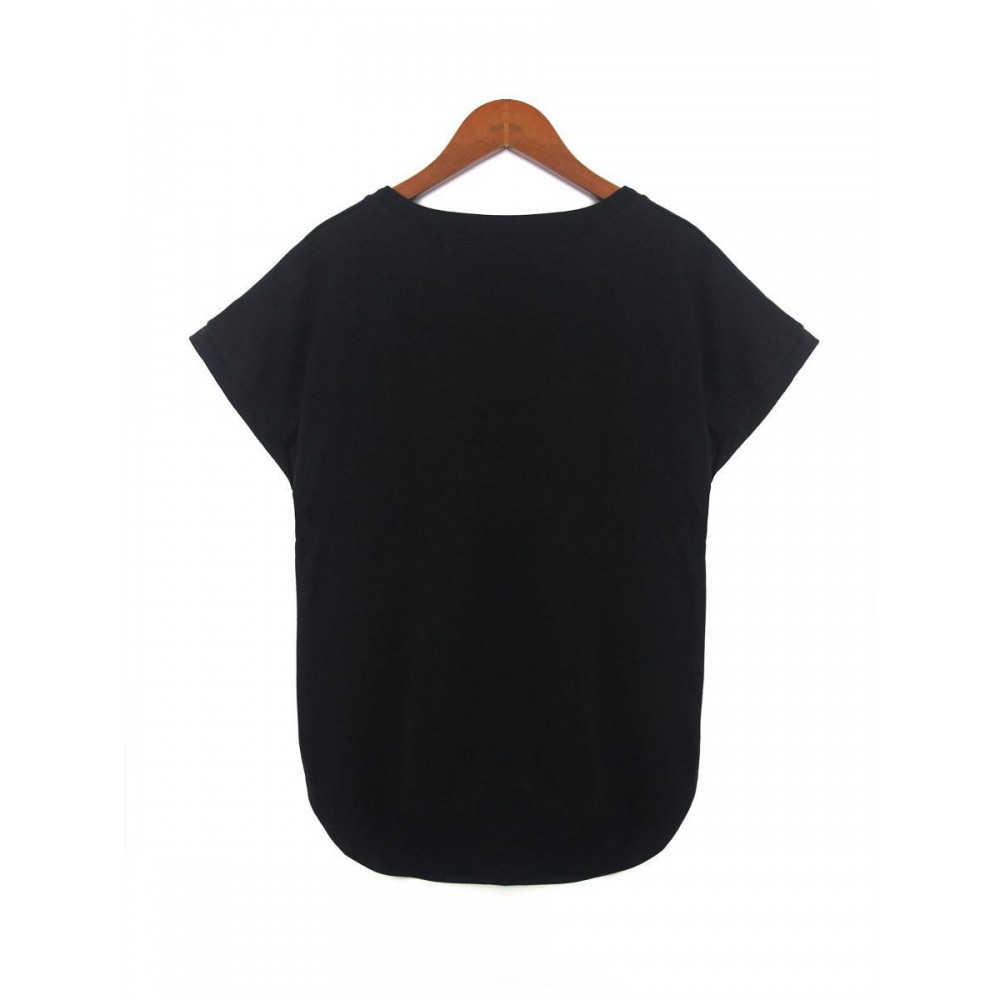 Contrast Color Letter Embroidered Short-Sleeved Sweater Women's T-Shirt